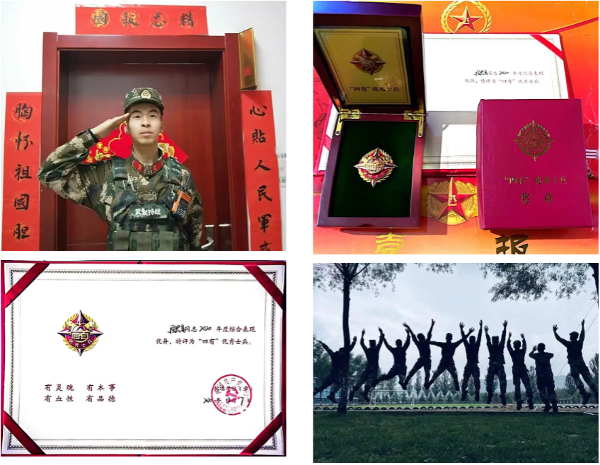2019年9月-2021年9月,段宏高同学在中国人民武装警察部队参军服役两年。服役期间,他积极学习应急处突和抗洪救灾等基本技能,共参与应急处突和抗洪救灾等任务30余起;他努力学习站岗执勤和体能训练等科目,连续600多天站岗执勤,并获“四有优秀士兵”奖章和嘉奖各1次。身为一名武警战士,他深刻认识到“宝剑锋从磨砺出,梅花香自苦寒来”的真正内涵,同时也坚定了为祖国药学事业奉献终身的信念。在服役期间,他参与多次武装押解任务,塑造了“单丝不成线,独木不成林”的合作理念。