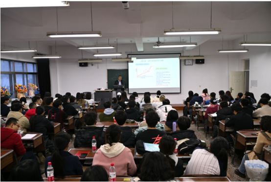 在课堂上,新增了许多特殊的“同学”——校长、研究生院院长、无涯书院院长、beat365官方网站领导班子成员、药物化学教研室的同事们,还有学院青年教师、毕业学生代表、在读研究生等等近50人济济一堂,与全体同学共同聆听了孙老师最精彩的一课。