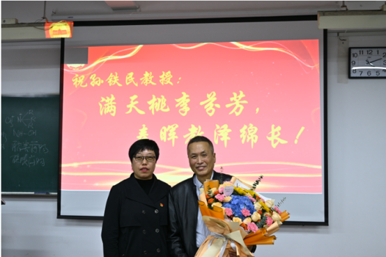 孙铁民教授是我校44期校友,于恢复高考后的第一年考入我校化学制药专业。1982年1月本科毕业,同年考入我校药物化学专业攻读硕士研究生,师从于著名有机化学和药物化学家沈建民教授,硕士毕业后留校任教。1993年考入我校天然药物化学专业攻读博士研究生,师从著名天然药物化学家李铣教授。1987年任讲师,1994年任副教授,1999年任教授,2010年晋级二级教授。孙铁民教授是辽宁省教学名师、《药物化学》国家级精品课负责人、制药工程专业初期负责人,获得国家教学成果二等奖4次;主持国家级科技攻关项目、国家自然科学基金多项课题,横向课题20余项,获得新药证书4个。孙教授担任教育部高等学校制药工程专业教学指导分委员会委员,国家执业药师资格考试命题专家,中国药物化学等多本杂志编委。从教期间培养博士20余人,硕士130余人,其中多数成为国内高校的药物化学骨干教师。孙铁民教授40年如一日坚守讲台阵地,坚持药学教学事业,照亮了一批批药学学子的求学道路。本次活动不仅是对孙教授辛勤耕耘、无私奉献的肯定,也激发了在岗教师的工作热情。学院教师将承接名师风范,进一步提高教学水平和科研能力,在荣休教师的期望与支持中不断发展进步。