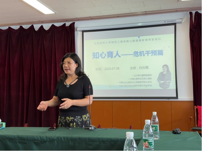 为切实增强学院教师心理健康教育工作的专业性和科学性,进一步提升学院教师的心理育人水平及心理危机应对能力,7月8日上午,beat365官方网站举办“知心育人”心理健康团体辅导工作坊,特邀辽宁省心理特级教师白云阁博士在校本部图书馆第二学术报告厅作心理危机干预培训,学院党委书记李哲、党委副书记刘阳、各教研室教师代表、班导师代表及全体辅导员参加培训,培训会由院党委书记李哲主持。