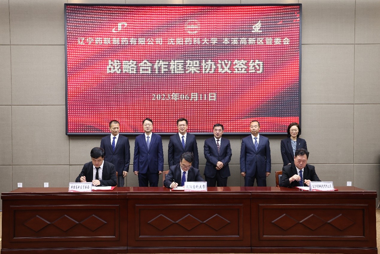 我校与本溪高新区管委会和辽宁药联制药有限公司三方共同签署战略合作框架协议。