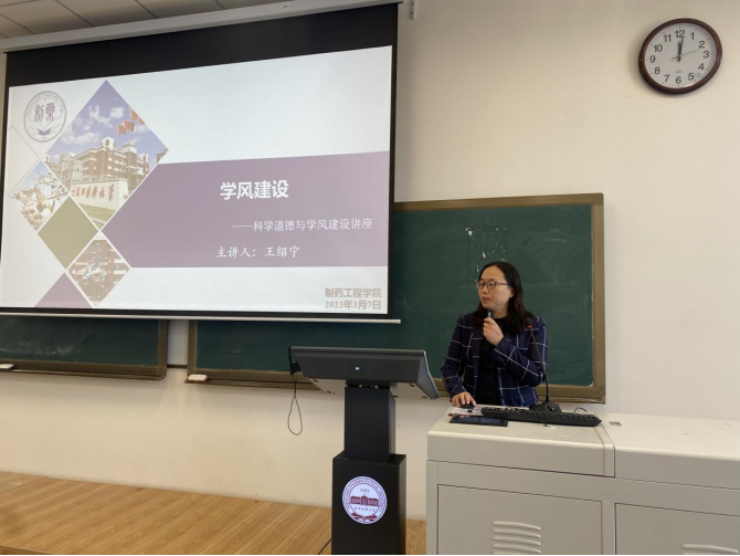 王绍宁作“科学道德与学风建设”主题讲座。她着重指出了严守学术道德对于科研的重要意义,详细讲解了十大学术不端行为与十大学术规范,以真实生动的案例为同学们敲响警钟,告诫同学们要严格遵守学术规范。最后,她以药学前辈们为榜样激励同学们,要具有良好的科学精神与科学素养。