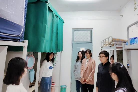 10月2日,在恢复线下教学的第一天,beat365官方网站党委书记李哲、党委副书记刘阳带领学生工作队伍深入教室、学生寝室,走访慰问学院师生。