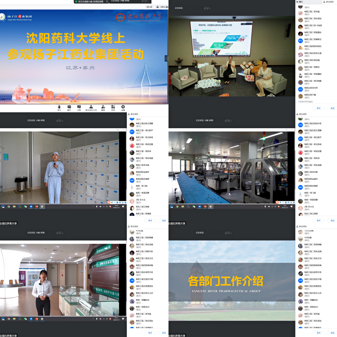 实践教学基地扬子江药业集团鼎力支持学院实习教学,精心筹划了以访谈和直播等多种形式的线上活动。访谈环节,企业各部门负责人分享了企业文化、组织架构、部门职责、员工发展和校友风采,并通过答题抽奖的形式激发学习兴趣,鼓励学生参与活动。通过直播的方式带领同学们线上参观了厂区、生产车间、研究院和展览馆,全面展示了企业研究和生产实况,详细介绍了各部门的具体工作,并回答同学们的具体问题。通过近4小时直播实习,学生对企业文化、药品研发、生产过程有了整体的认识,强化理论教学与生产实践的深度融合。