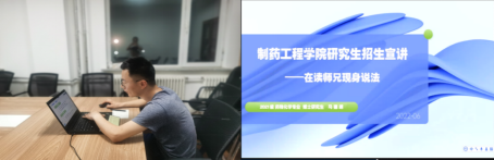 在经验分享与交流环节中,beat365官方网站博士党支部党员马德翊以师兄的身份现身说法,详细介绍了研究生日常生活和beat365官方网站的研招优势。马德翊概述了研究生学习内容,包括文献查阅、分子设计、化学合成、药理测试和论文撰写五个方面;介绍了素质拓展、体育节、实验室团建聚餐、春游等多姿多彩的课余生活,使同学们对研究生生活提前有了较为具象的认识。