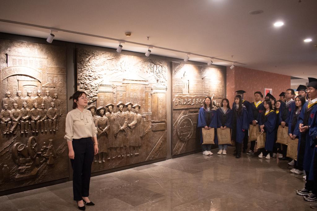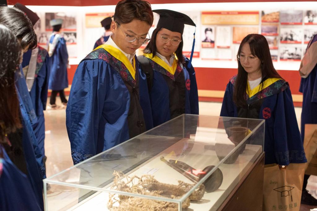 学位授予仪式结束后,参会学生代表在党政办公室副主任张达盼的引导下共同参观校史馆,在临别之际,再次感受母校九十余年来的发展历程,将爱国之情、爱校之心与人生抱负紧密结合,不忘初心,砥砺前行,奔赴即将书写的多彩明天。