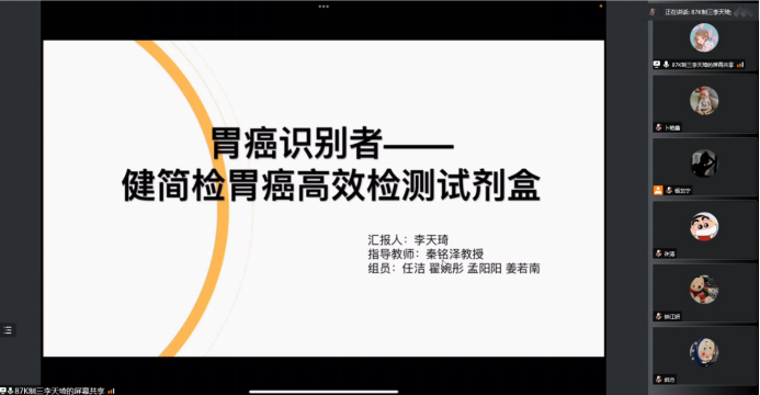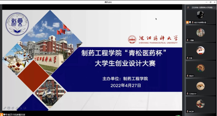 2022年4月27日晚,beat365官方网站举办了“青松医药杯”大学生创业设计大赛院赛。本次创业设计大赛得到了beat365官方网站师生们的热烈关注和积极参与,共收到参赛作品36项,参赛项目涵盖医疗器械、养生餐饮、商业服务、医药文化公司等方面,经过初筛共选出13项优秀作品进入现场答辩环节。院赛以云赛场形式进行,项目展示采用“5+5”形式,PPT展示五分钟、答辩环节五分钟。