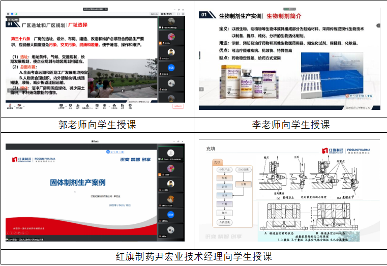在线教学包括校内教师理论知识讲授和企业专家生产案例讲解。