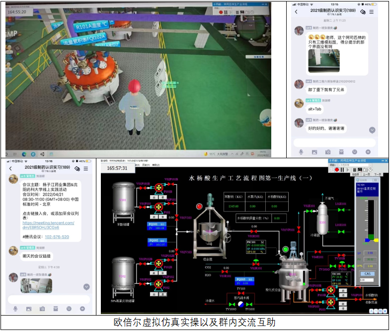 作为工程实践类课程,认识生产实习中实践教学是不可或缺的一部分。为在疫情环境下最大限度地还原实践操作,学院采用北京欧倍尔软件技术开发有限公司提供的技术平台,以线上仿真实习的形式实现实际操作的练习。本次认识生产实习选用水杨酸、阿司匹林生产线、固体制剂生产线和单克隆抗体生产线,通过虚拟仿真技术模拟了生产全过程。平台展示了清晰的工艺路线、典型的生产设备、逼真的车间环境和详细的操作步骤,很好地配合了理论教学,实现了较好的学习效果。同时,通过建立QQ群,教师及时为学生答疑解惑,方便师生沟通。
