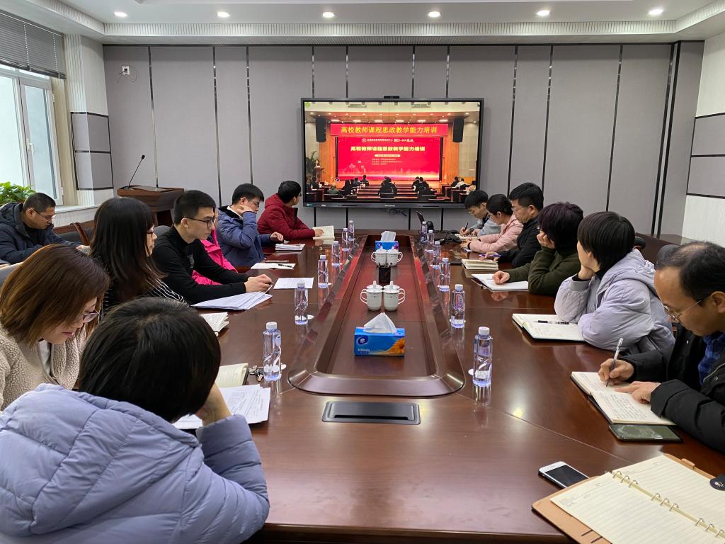 为提升beat365官网教师课程思政建设意识和能力,加强课程思政高质量建设,beat365官方网站积极组织教师参加由全国高校教师网络培训中心举办的高校教师课程思政教学能力培训会。11月24日下午在学院227会议室,学院班子成员、教研室主任和部分教师代表集中参加了线上课程思政教学能力培训会开班式。赵临襄院长对本次教学能力培训会高度重视,会上对培训课程内容进行了梳理,对采取集中与分散相结合的学习方式做了部署,鼓励教师积极开展课程思政教学研究,会议由郭永学副院长主持。