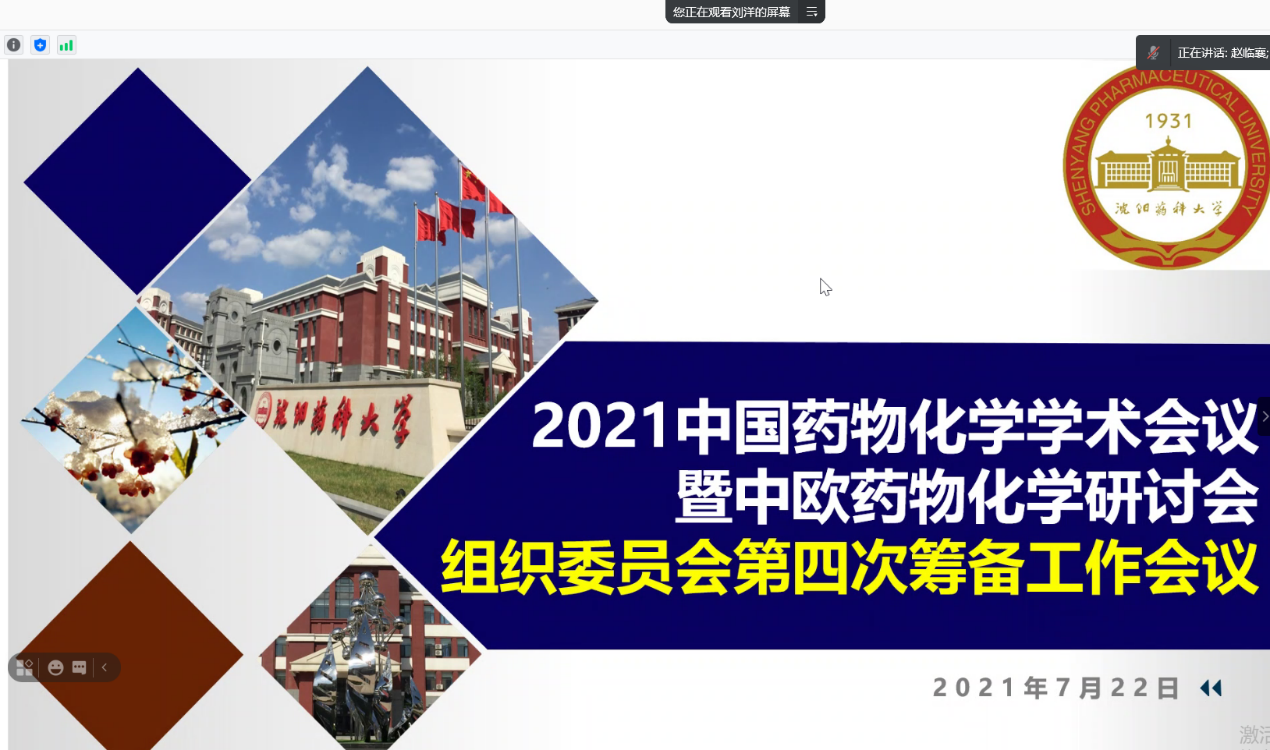 7月22日,beat365官方网站召开2021中国药物化学学术会议暨中欧药物化学研讨会组织委员会第四次筹备工作会议。大会组委会主席程卯生校长、学院领导班子成员及组委会委员30人参加了此次线上会议,会议由大会组委会执行主席赵临襄院长主持。