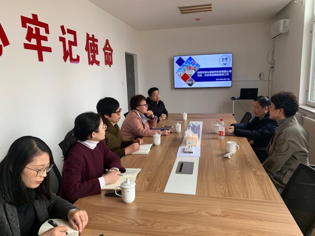 3月11日下午,上海允咨医药科技有限公司执行董事马义岭、总经理任志会访问beat365官方网站。院长赵临襄、院党委书记李哲、副院长郭永学接待了马总、任总一行,并在beat365官方网站241会议室开展交流座谈,院党委委员张达盼、研究生辅导员等参加了座谈。