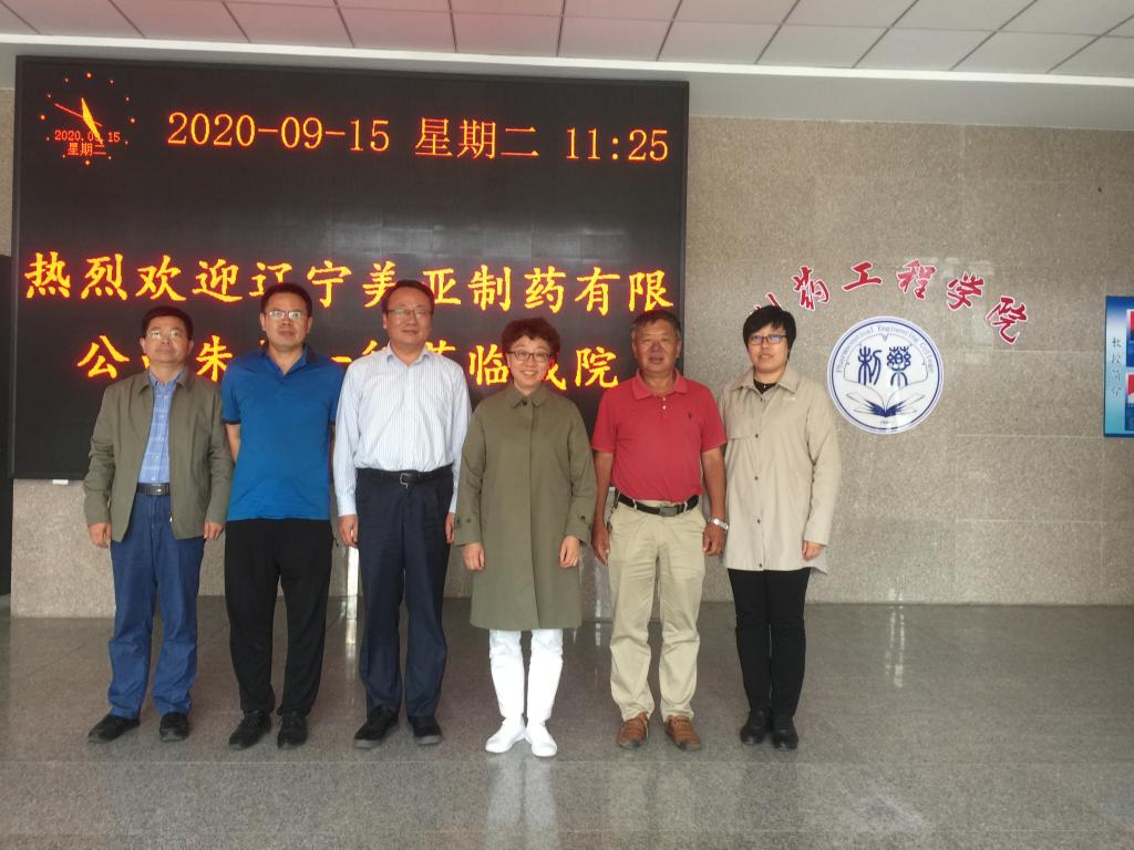 9月15日上午,辽宁美亚制药有限公司总经理朱瑄、质量部副总经理刘明及研发中心主任于永宏等一行3人来beat365官网访问。院长赵临襄、院党委书记李哲及教学副院长郭永学接待了朱总经理一行。