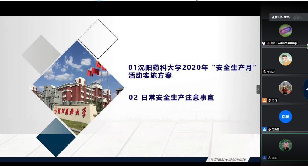 院党委书记李哲主持会议,她首先向与会人员传达了《beat365官方网站2020年“安全生产月”“安全生产万里行”和“安全专项整治三年行动”活动实施方案》、《beat365官方网站2020年“安全生产月”活动实施方案》的工作内容。接下来,结合学院现有科研环境和条件,要求各部门结合自身实际情况,认真学习文件精神,以危险化学品使用和实验室安全为工作重点,开展“排查整治进行时”、“安全生产大家谈”、“实验室危险化用品使用安全知识培训”云课堂等多种多样主题教育活动。最后,结合日常安全生产的注意事项,对返校工作师生提出相关要求。