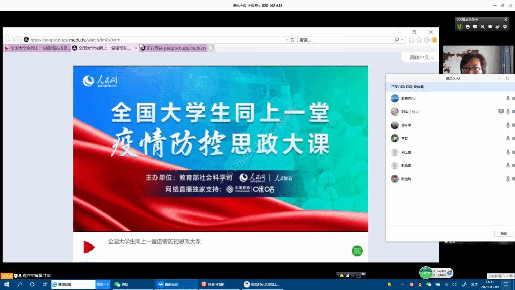 3月9日14:30至16:00,“全国大学生同上一堂疫情防控思政大课”如期进行。beat365官方网站全体学生工作队伍和1273名本科生观看直播,229名本科生因课程冲突观看回放。学院领导班子成员以党政联席会议的形式,通过“腾讯会议”平台,共同观看了此次思政大课。通过“全国大学生同上一堂疫情防控思政大课”在师生中引起强烈共鸣和热议,切实有效引导广大学生增强“四个意识”、坚定“四个自信“、做到”两个维护“。