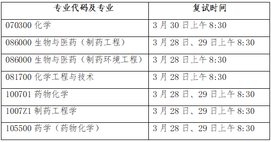 1.考生报考专业代码和专业名称为: 100701药物化学、105500药学【药物化学研究方向】、1007Z1制药工程、086000生物与医药【制药工程】。(具体复试内容见附件《beat365官方网站2022年药物化学、制药工程学科硕士研究生复试实施细则》)