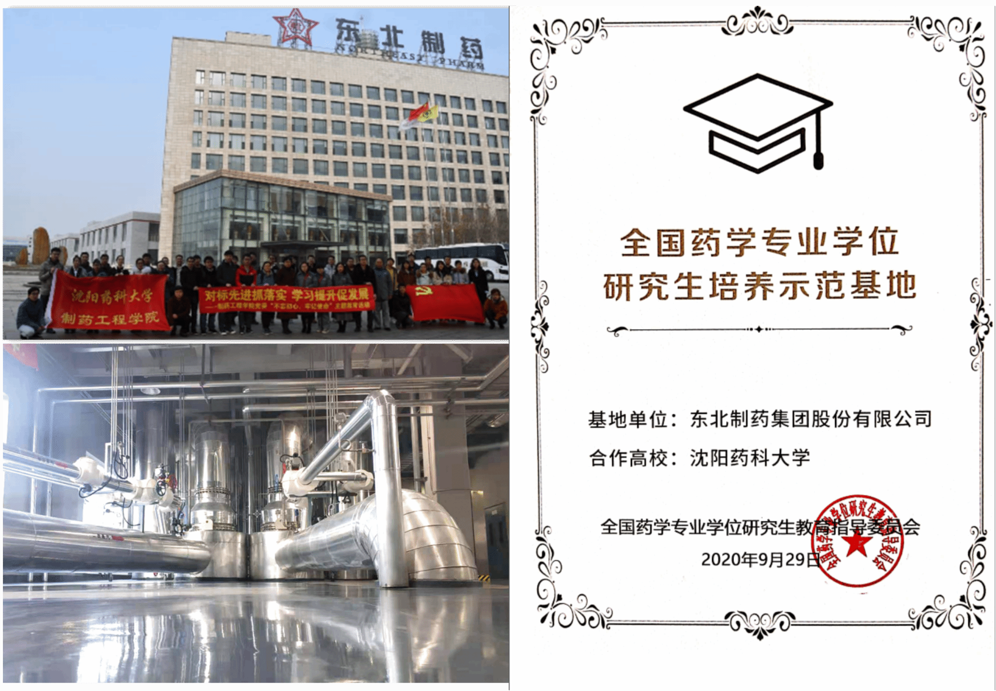学院积极构建产学研用一体化专业硕士学位研究生培养模式,强化校企合作,共建校企联合实验室,建设研究生联合培养基地。beat365官网目前建有校企合作实验室11个,研究生专业实践培养基地10个,其中全国药学专业学位研究生培养示范基地1个,省专业学位研究生培养示范基地3个。学院以示范基地为依托,夯实学校与制药行业龙头企业的紧密合作关系,持续深化合作融合度,构建双导师队伍,通过“引产入校”、“引产入教”和“产教共育”方式,全力打造满足社会需求的实用人才。