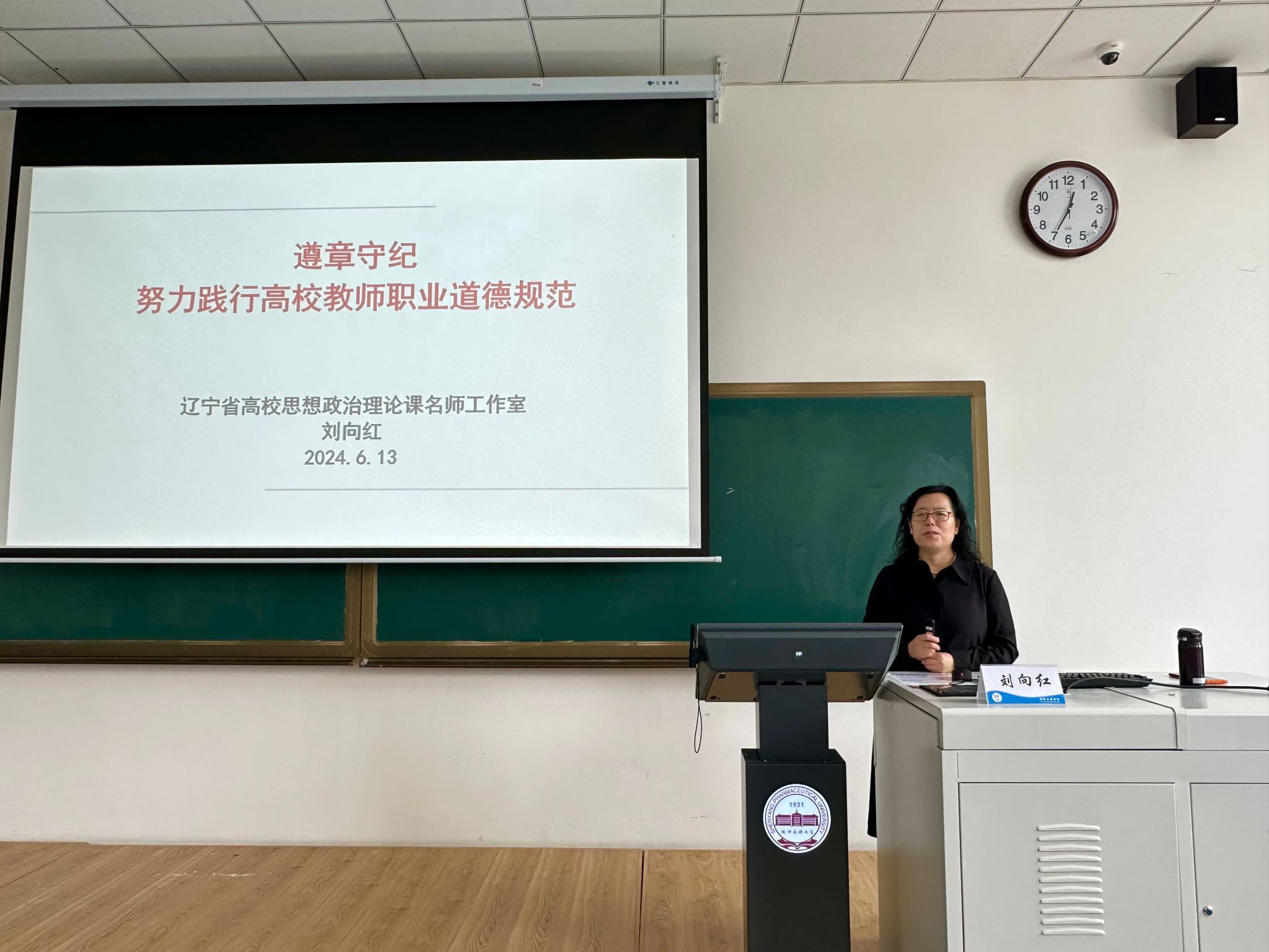为深入开展党纪学习教育,beat365官方网站于6月13日在南校区播馨楼204召开师德师风专题培训会,邀请了beat365官方网站党委党校教务长、党委组织部副部长(兼)、辽宁省高校思想政治理论课名师工作室刘向红教授作题为“遵章守纪,努力践行高校教师职业道德规范”专题讲座。学院领导班子成员、学院教师参加了会议,培训会由学院党委书记李哲主持。