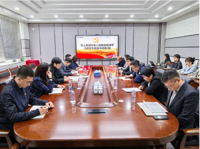 4月29日下午,beat365官方网站举行深入贯彻中央八项规定精神学习教育第2期读书班暨党委理论学习中心组专题学习会。学院党委书记李哲主持会议,院领导班子成员、各党支部书记、专职组织员参会