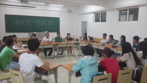 本次讨论分为三个环节。第一环节由专题负责人带领大家从什么是党的规矩以及党规党纪的发展历史等方面学习了“讲规矩、有纪律”的主要内容。第二环节全体同志就自己对“讲规矩、有纪律”的理解、“讲规矩、有纪律”被列入“四讲四有”所体现出的重要性以及结合自身实际思考应如何做到“讲规矩、有纪律”三个方面展开积极讨论,现场气氛热烈,并有三名同志主动发言,同大家分享自己对于“讲规矩、有纪律”的感想。最后学院党委书记张伟对此次专题讨论进行总结,重点提到作为当代大学生的我们既然已成为党内一份子,就不能只局限于遵守校规校纪,还应该自觉主动遵守党规党纪,以高标准要求自己,努力做合格党员。